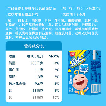 燕塘 乐比 原味乳酸菌牛奶饮品 120ml*16盒 礼盒装 儿童 常温酸牛奶