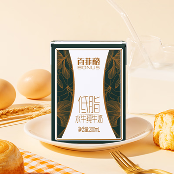 百菲酪低脂水牛纯牛奶3.8g乳蛋白200ml*12盒生水牛乳整箱早餐送礼礼盒装