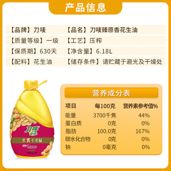 刀唛(Knife)【保真花生油】花生油6.18L 臻原香物理压榨一级精炼食用油