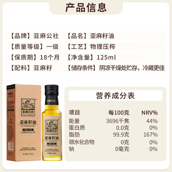 亚麻公社直饮【保真亚麻籽油】125ml 一级冷榨直接喝亚麻油含omega3食用油