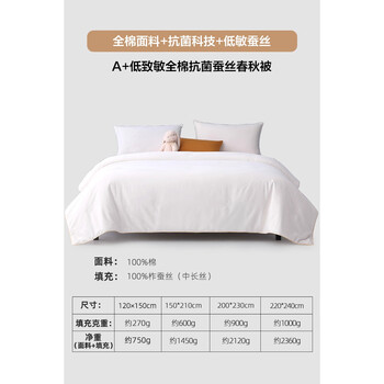 水星儿童被子蚕丝被100%蚕丝春秋被四季被A类空调被约4.2斤200*230cm白
