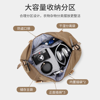 Landcase 手提旅行包女大容量健身包游泳瑜伽包收纳行李包袋 4095卡其大号