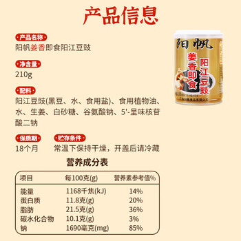 阳帆阳江豆豉酱 0添加防腐剂姜香味即食软豆豉 下饭菜拌面酱调料 210g