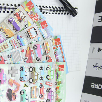 初格儿童贴纸贴画玩具男女孩动漫卡通3d立体泡泡贴小汽车拼豆