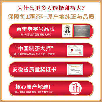 谢裕大茶叶祁红毛峰祁门红茶一级国印自饮150g听装女神茶自饮口粮推荐
