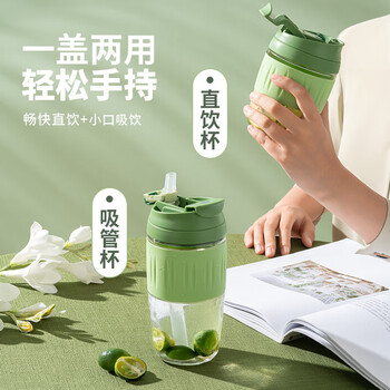JEKO&JEKO玻璃杯水杯女咖啡杯便携吸管杯子女士成人随行茶杯 400mL牛油果绿