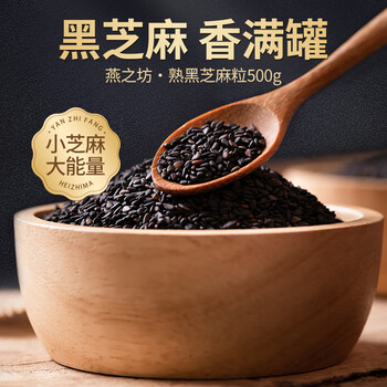 燕之坊熟黑芝麻粒1斤低温烘培五谷杂粮干吃零食醇香黑芝麻