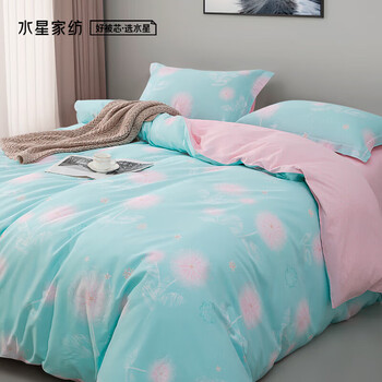 水星家纺四件套床上纯棉100%全棉床单四件套加大双人被套枕套1.5米床如玉