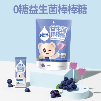 贝欧宝 益生菌棒棒糖 42g 葡萄味 0糖 儿童营养糖果 休闲零食