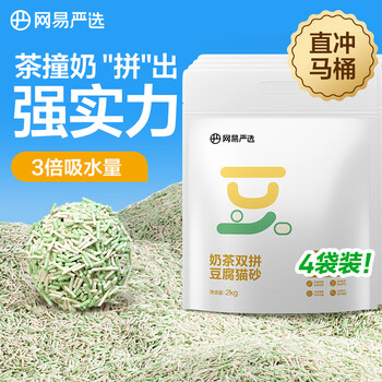 网易严选 奶茶双拼豆腐猫砂快速吸水无尘猫砂除臭豆腐砂 2kg*4包整箱装