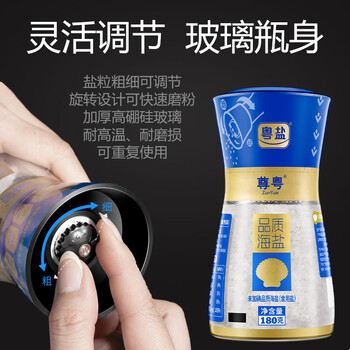 粤盐研磨海盐180g 无碘盐 食用盐无抗结剂 粗细可调 牛排海盐