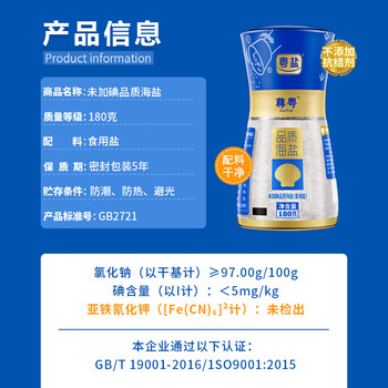 粤盐 无碘盐 未加碘食用研磨牛排海盐 未添加抗结剂180g*1
