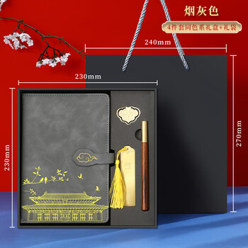 嘉然恒 国潮笔记本本子套装故宫高颜值书签款精美记事本高端商务送男女老师伴手礼品实用定制 烟灰色