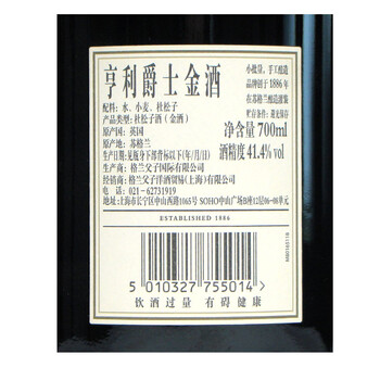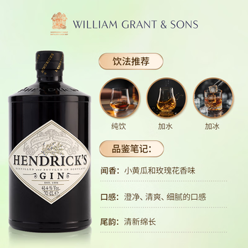 亨利爵士(Hendrick's)金酒杜松子酒 洋酒700ml 鸡尾酒调饮