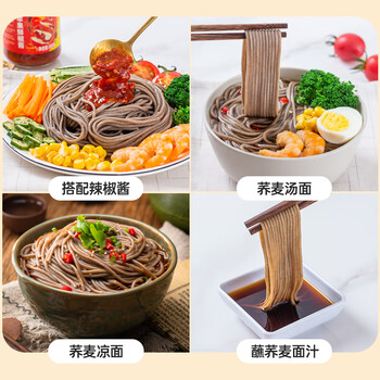 云山半0脂肪黑全麦荞麦面半干鲜面条低脂杂粮拌挂面代餐粗粮主食400g*2