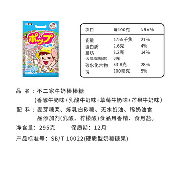 不二家牛奶棒棒糖(香醇牛奶味+乳酸味+草莓味+芒果味)295g*1袋 4种口味共计51支