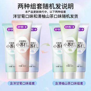 舒客小苏打牙膏含氟防蛀去渍美白3支共480g青柠薄荷洋甘菊新老随机发