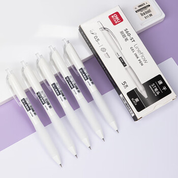 得力(deli)速干顺滑中性笔小白笔 0.5mmST笔头学生刷题笔考试笔 黑色5支/盒 S60-ST