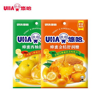 悠哈 蜂蜜金桔+西柚舒润糖 103g*2 润喉糖 护嗓润肺嗓子干痒 清新口气