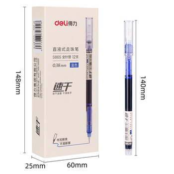 得力(deli) 中性笔 全针管无印风水笔 0.38mm直液笔签字笔 走珠笔 会议笔 蓝色 12支/盒 DL-S865