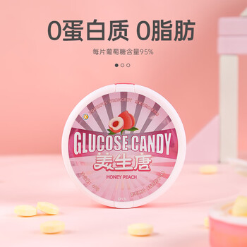 美生唐葡萄糖片 40g 清新桃子味 低血糖头晕 便携补充能量 零食压片糖果