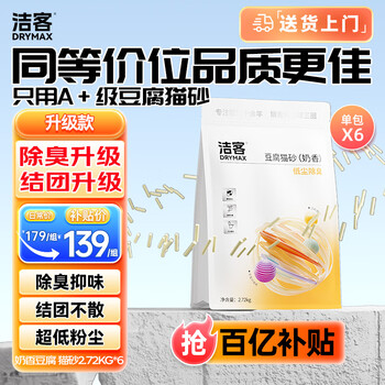 洁客(Drymax)豆腐砂植物环保结团除臭猫砂奶香味2.72kg*6袋16.32kg