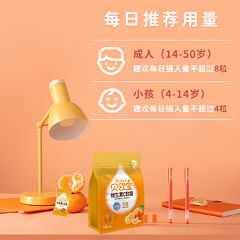 贝欧宝 维生素C软糖 270g 柑橘味 无糖 休闲零食 果汁糖果 礼物