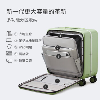 米熙前开盖拉杆箱子行李箱大容量铝框箱男旅行箱包女18英寸牛油果绿60