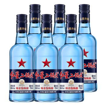 红星二锅头 蓝瓶绵柔8陈酿 清香型白酒 43度 750ml*6瓶 整箱装口粮酒