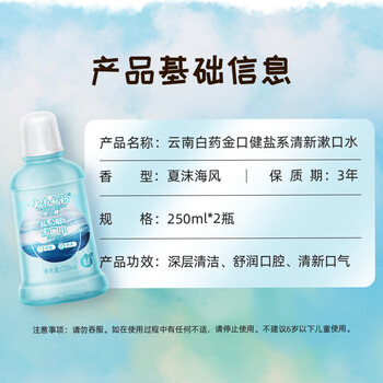 云南白药夏沫海风漱口水含盐祛异味洁净口腔清新口气便携旅行套装250ml*2