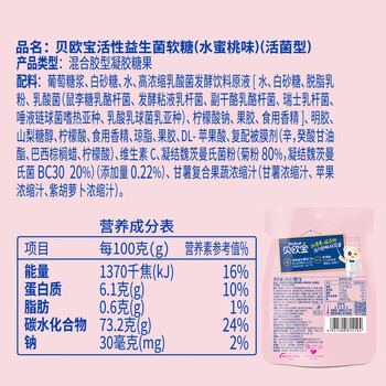 贝欧宝活性益生菌软糖 52g 水蜜桃味 休闲零食 儿童零食 糖果