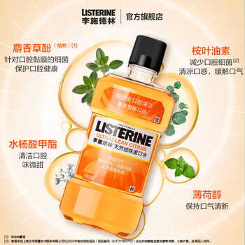 李施德林(Listerine)漱口水 天然橙味清新口气 500mL*3瓶装