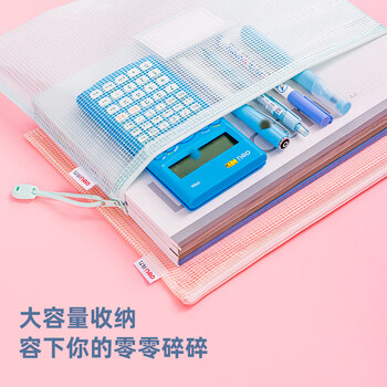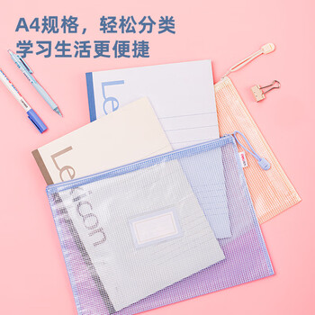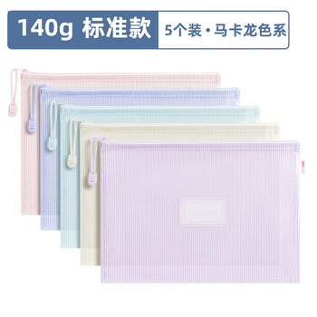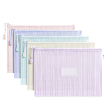 得力(deli)5只A4网格拉链袋文件袋学生科目分类袋标签款 马卡龙色系混色63482A