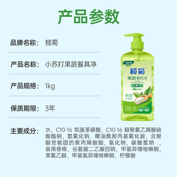榄菊小苏打洗洁精1kg 家用去油果蔬餐具净食品用级别洗涤灵 除农残