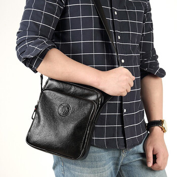 派保爵pabojoe男包单肩包男斜挎包柔软头层牛皮休闲背包大容量挎包竖款
