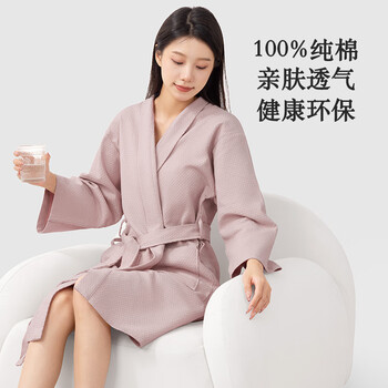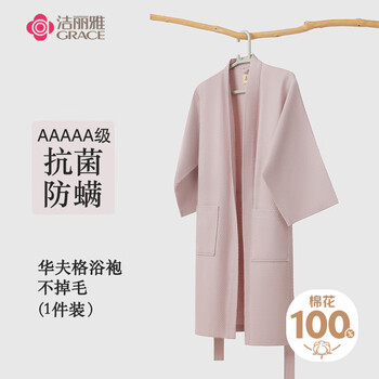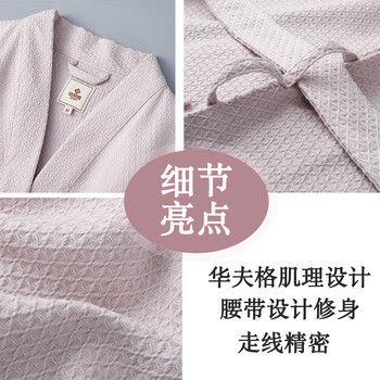 洁丽雅(Grace)抗菌防螨家居浴袍男女纯棉华夫格睡袍五星酒店舒适吸水情侣款浴衣