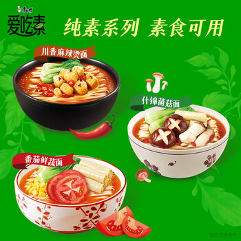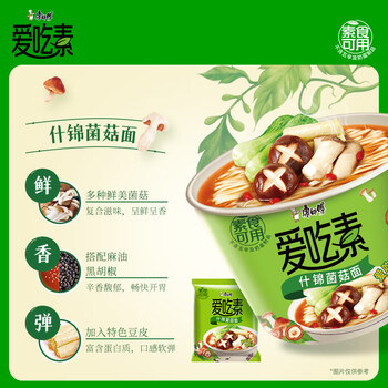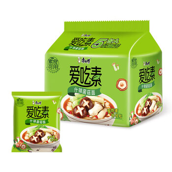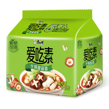 康师傅方便面 爱吃素 什锦蘑菇面 82.5g*5袋 素食方便面 泡面袋装 速食 一包
