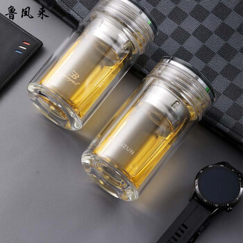 鲁凤来 .玻璃杯 礼盒装带过滤网泡茶杯 小巧精致贵族品质便携水杯230ML双层高硼硅材质防烫学生茶杯