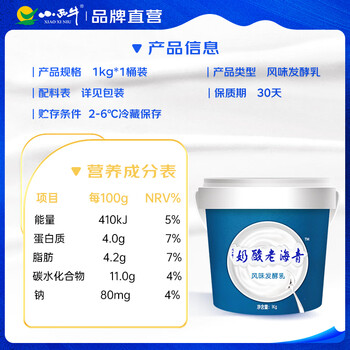 小西牛 青藏奶源桶装老酸奶高原酸奶1KG*1桶 源头直发
