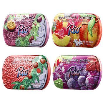 Rio 无糖薄荷糖 果味 14g*4盒 清新口气口香糖含片 醒脑休闲零食