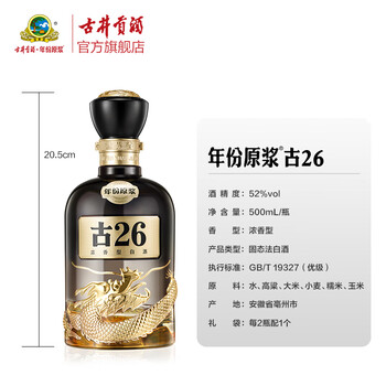古井贡酒 年份原浆古26 浓香型白酒 52度 500mL*1瓶 单瓶装