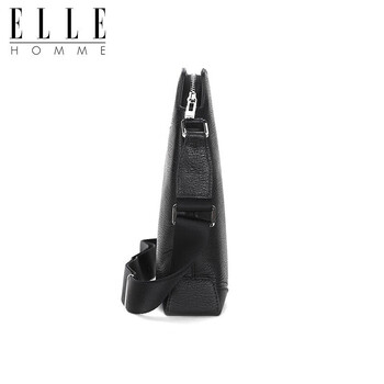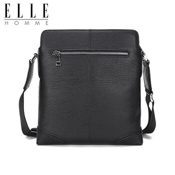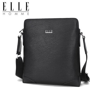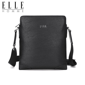 箱包皮具---精品男包---单肩/斜挎包ELLE HOMMEELLE HOMME 商务男士单肩包头层牛皮休闲斜跨包 百搭竖款男包日字包EA088208540黑色