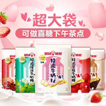 悠哈 特浓牛奶糖1kg 分享装 婚庆喜糖 休闲零食糖果 独立包装