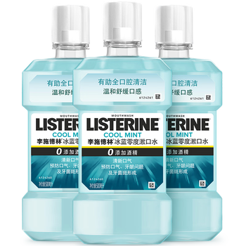 李施德林精油漱口水冰蓝零度清新口气减少口腔细菌500mL*3去口臭深层清洁