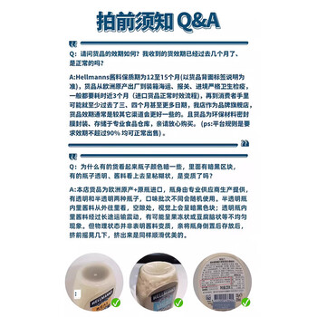 好乐门 Hellmanns 西班牙原装进口 淡味蛋黄酱 432g*1