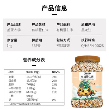 盖亚农场有机薏仁米2斤/罐(小粒薏米仁 五谷杂粮 粥饭伴侣)