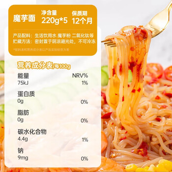 云山半魔芋面凉面220g*5袋凉皮低卡0脂轻即食免煮代餐速食健身饱腹主食