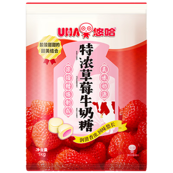悠哈 特浓草莓牛奶糖 1kg 休闲零食糖果 婚庆喜糖 独立包装