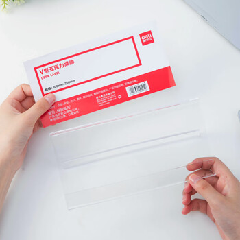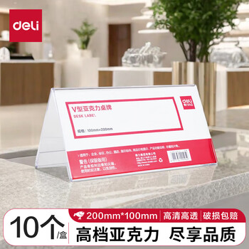 得力(deli)V型100*200mm亚克力桌牌展示牌席卡壳立牌 会议摆件 10只装 透明50874