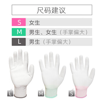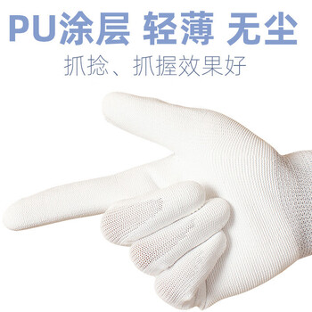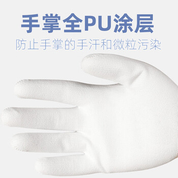 典克 涂掌涂指手套劳保耐磨工作pu防静电13十三针尼龙防滑薄款夏季透气白色胶皮男女M码 12双